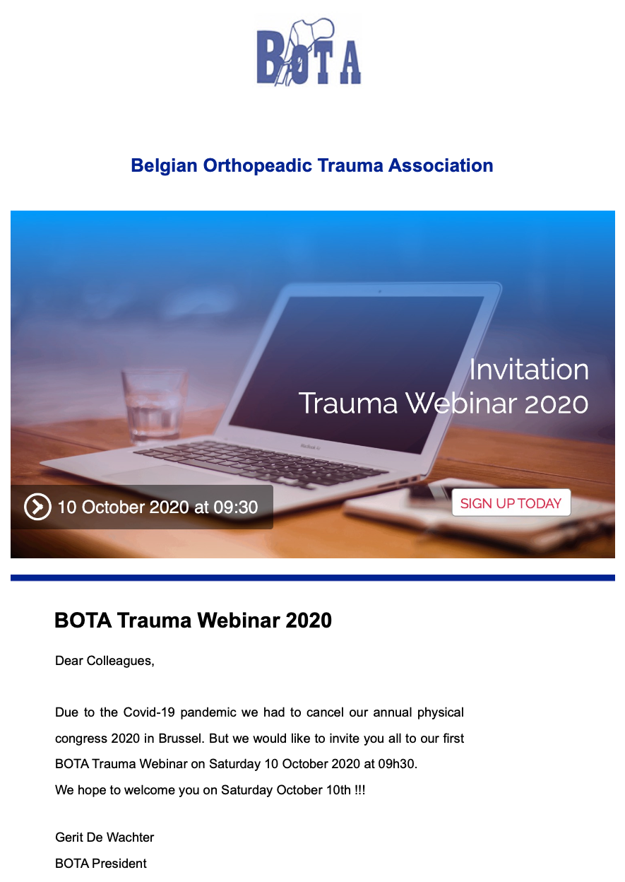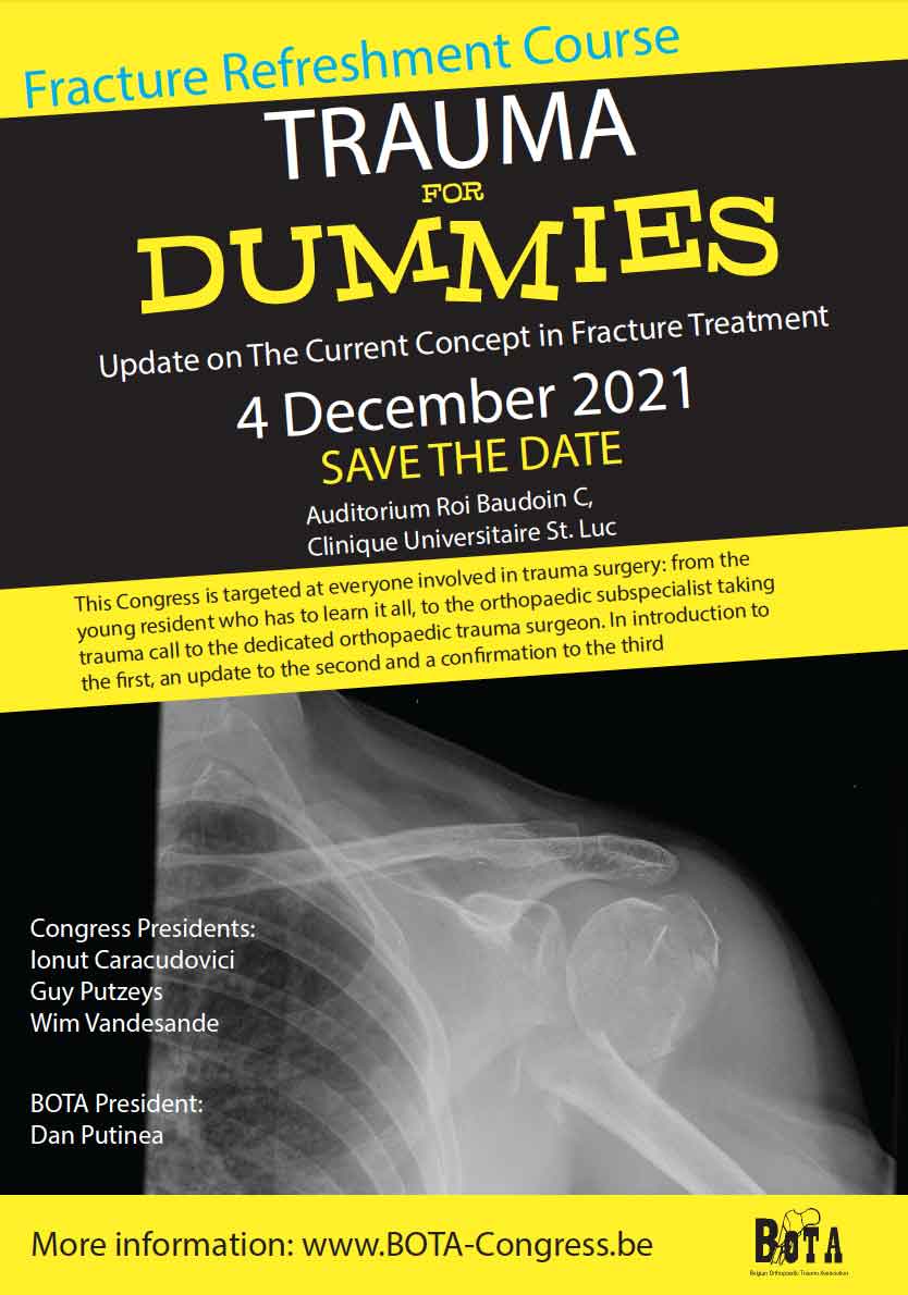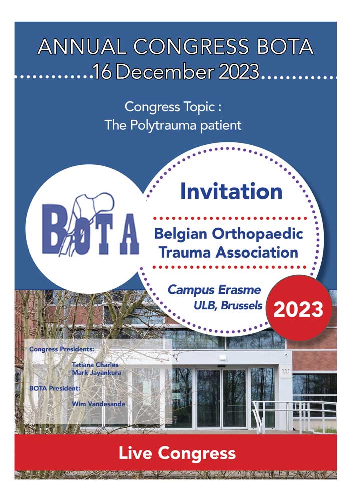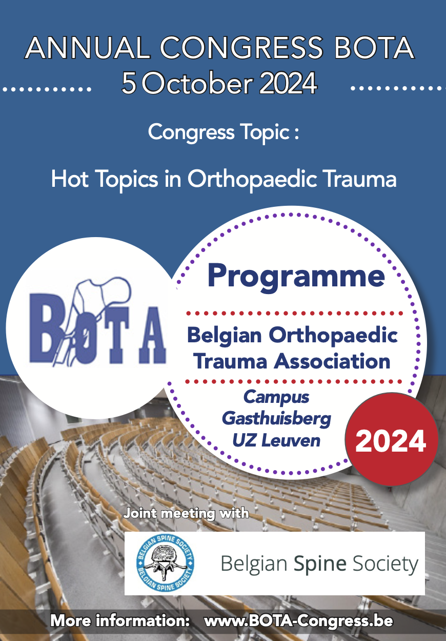 This was a joint meeting of BOTA and the Belgian Spine Society - BSS, at the University Hospital Gasthuisberg, Leuven, under the presidency of Michiel Herteleer with the topic: "Hot Topics In Orthopaedic Trauma"
